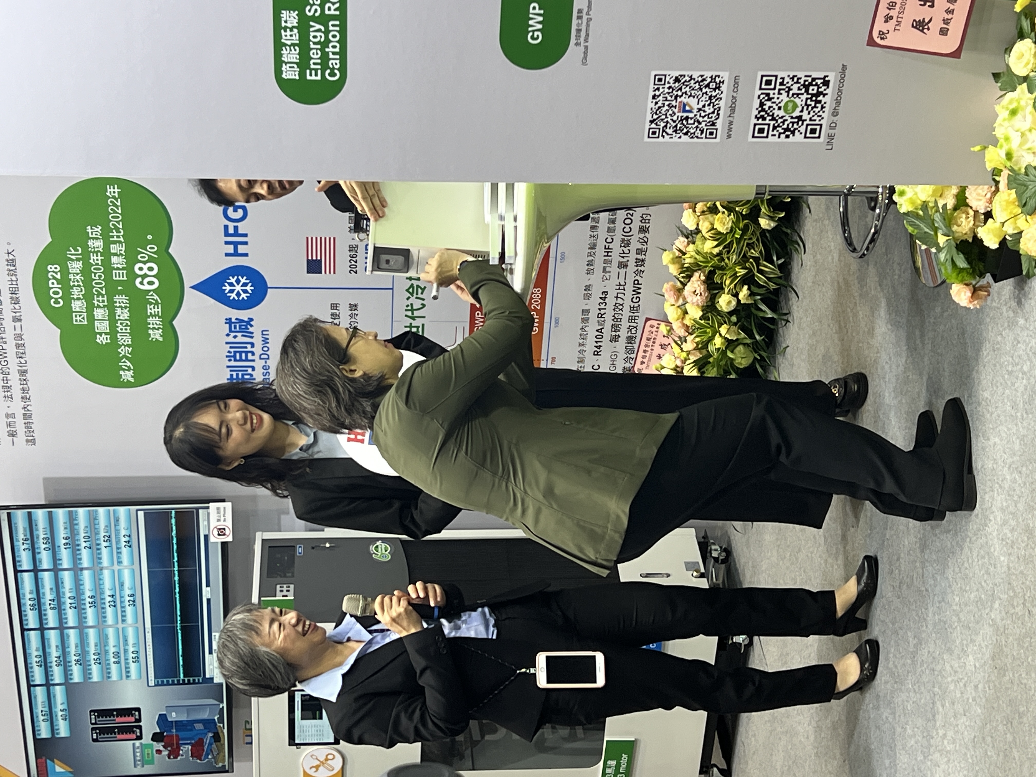 The Booth Design incorporates two feature walls : emphasizes technology and digitalization and green , low-carbon initiatives.